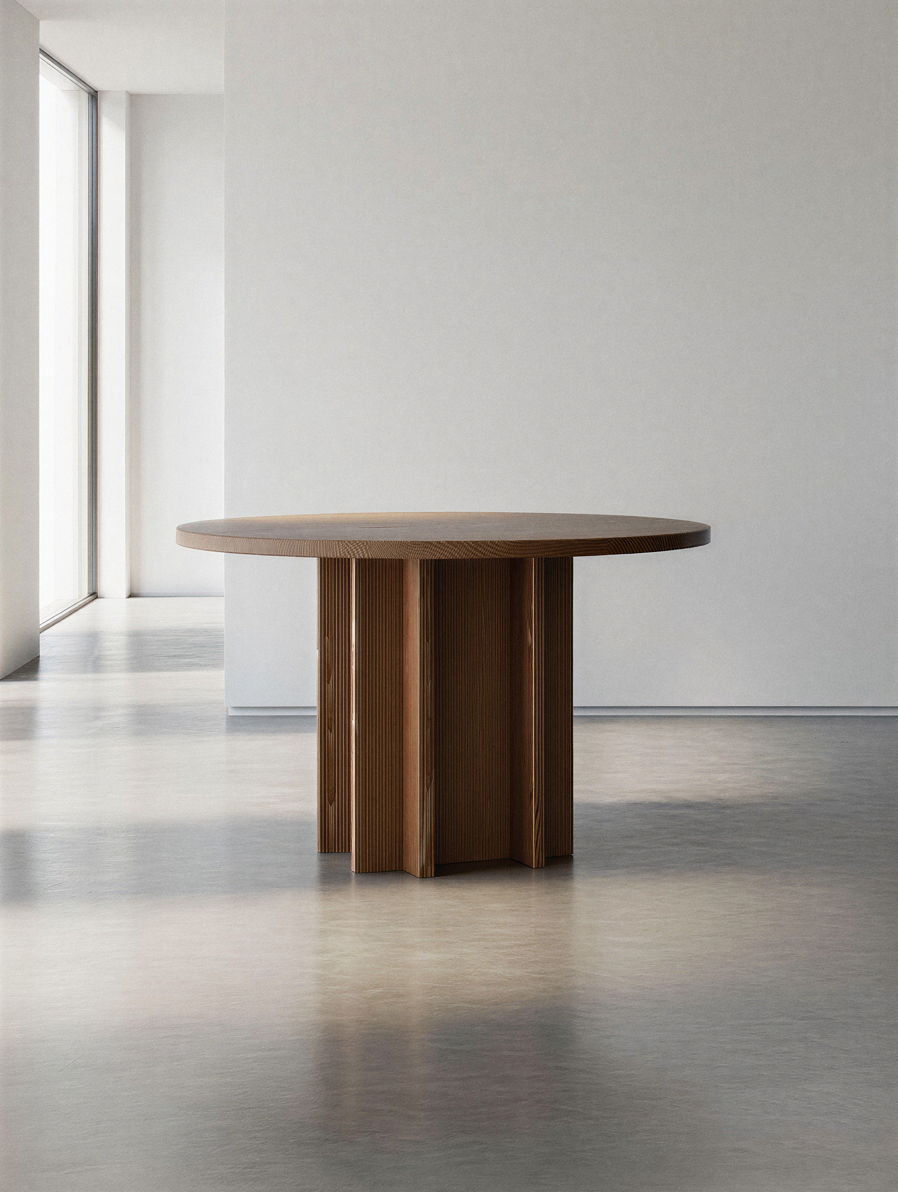 SILHOUETTE Spisebord Ø120 er en del af Tablelabs eksklusive serie i massivt Douglasgran, tegnet af den danske designer Laura Bilde.